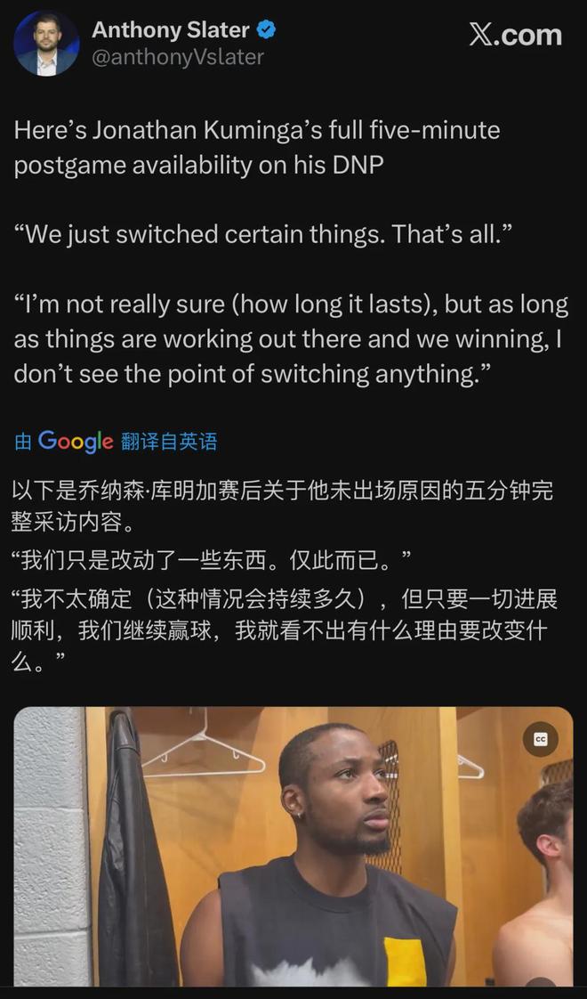 库明加上场0分......受伤了?并没有,而是直接被DNP。